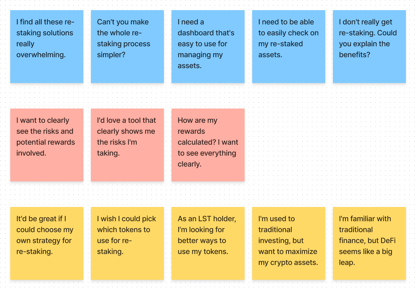 Our target audience consisted of LST holders, ranging from DeFi enthusiasts to more traditional investors looking to maximize their crypto assets. Key insights from our research included: